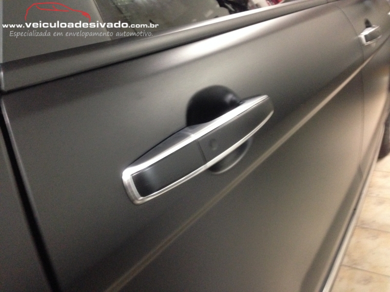 Envelopamento total em vinil adesivo fosco, aonde é desmontado algumas partes do veículo para melhor acabamento da película.