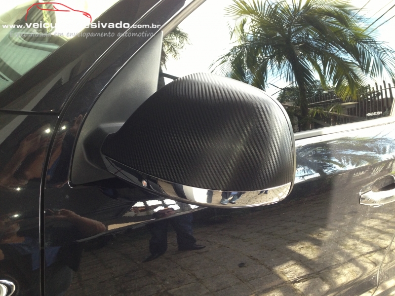 Envelopamento total em vinil  adesivo fibra de carbono, aonde é desmontado algumas partes do veículo para melhor acabamento da película.