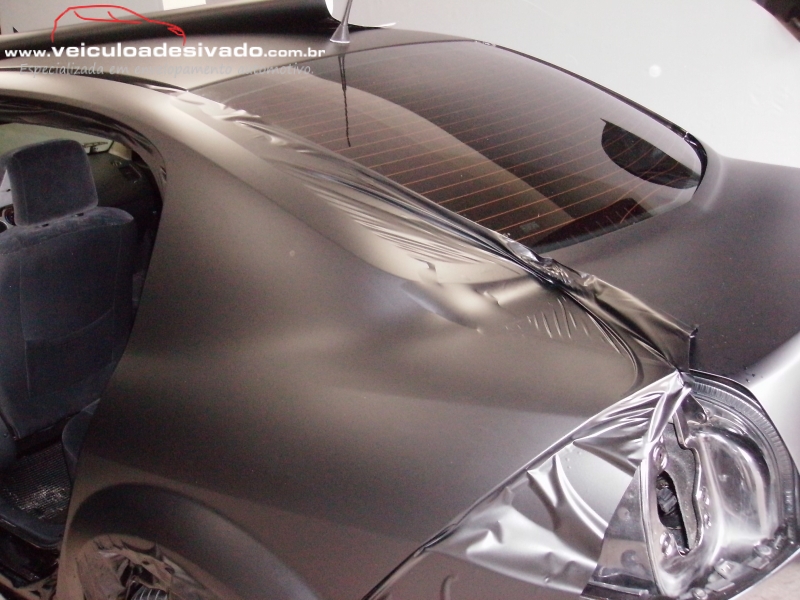 Envelopamento total em vinil adesivo fosco, aonde é desmontado algumas partes do veículo para melhor acabamento da película.